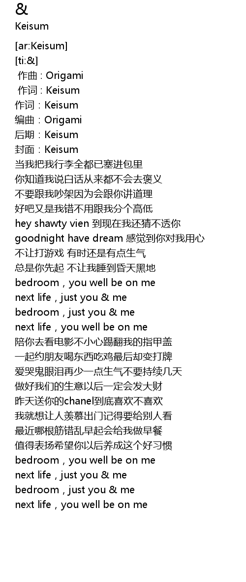 | [00:01.000] | 作词 : Keisum |