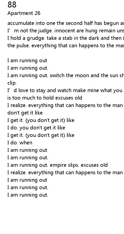 | I’d love to stay and watch make mine what you clutch; empire slips. the weight is too much to hold excuses old | |