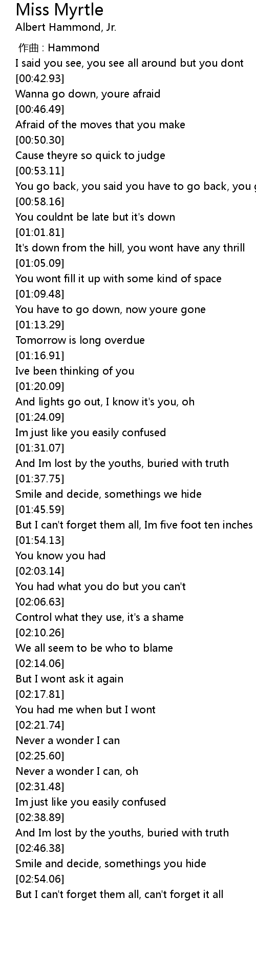 | [01:46.52] | But I can't forget them all, Im five foot ten inches tall |