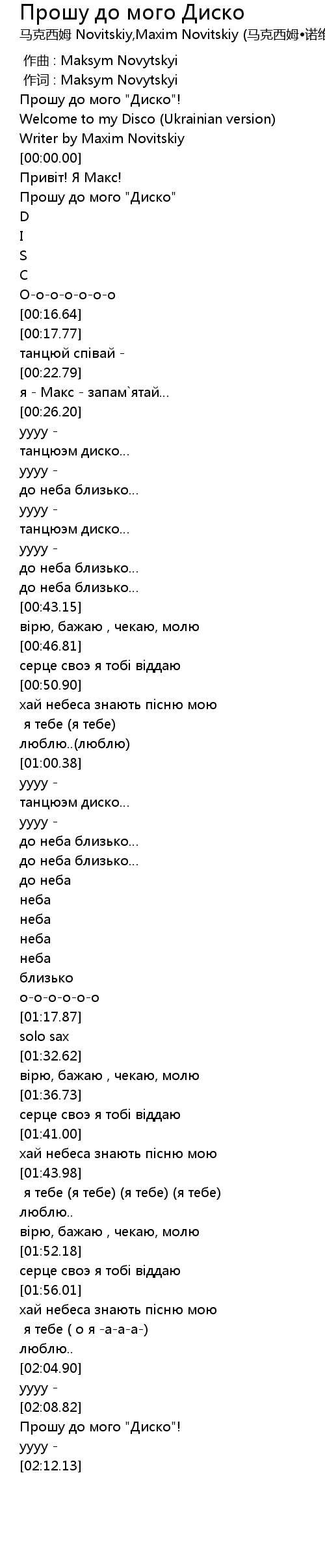 | [00:00.00] | Welcome to my Disco (Ukrainian version) |