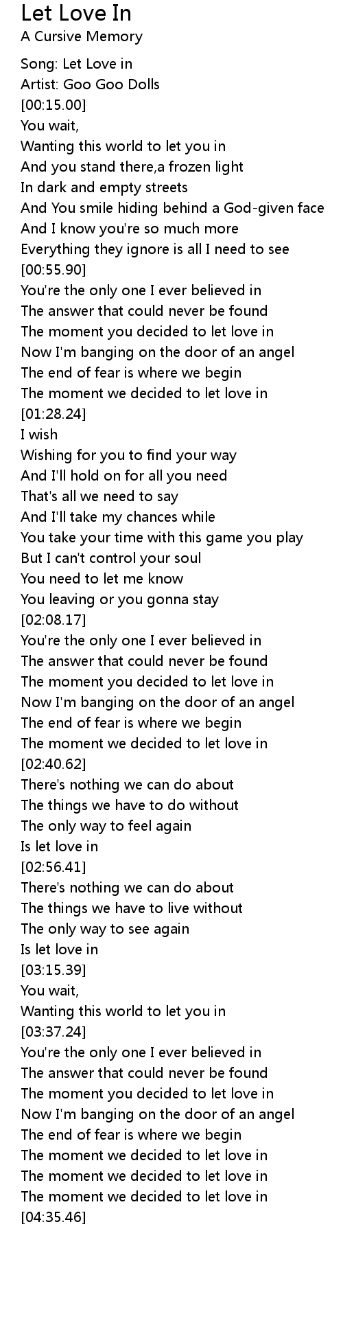 Song: Let Love in |