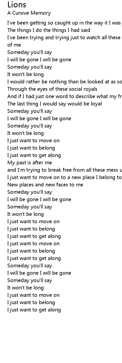 I've been trying and trying just to watch all these lions raging in and outside of me |