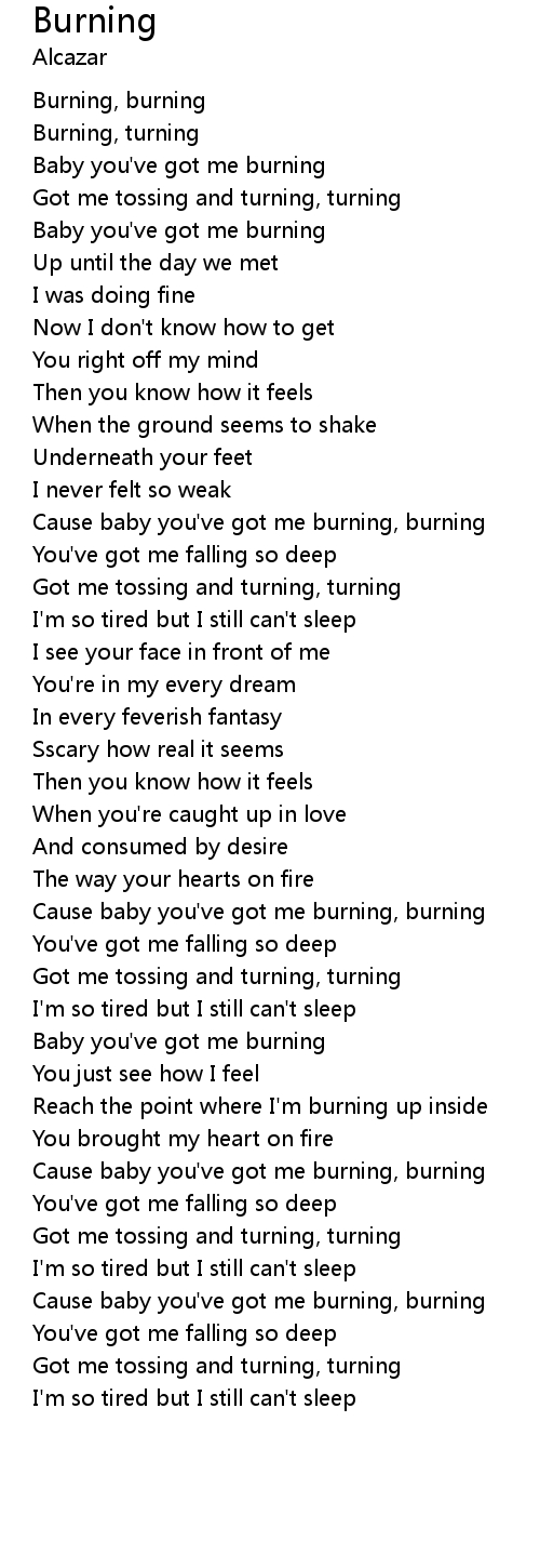 Cause baby you've got me burning, burning |