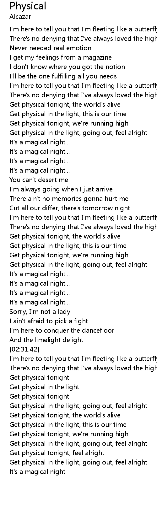 [03:17.95] Get physical tonight, feel alright