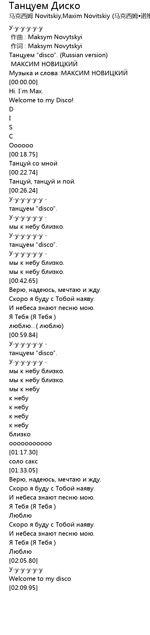 | [00:00.00] | Танцуем "disco". (Russian version) |