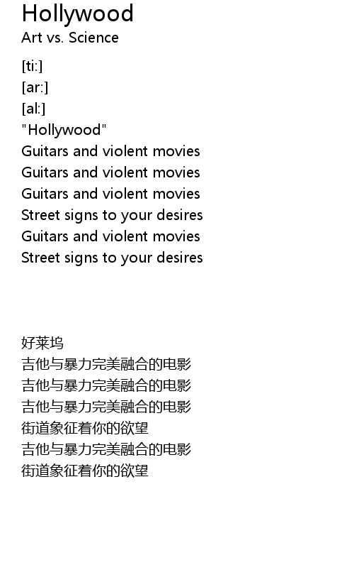 | [00:01.01] | "Hollywood" |