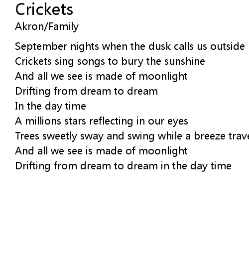 | Crickets sing songs to bury the sunshine | |