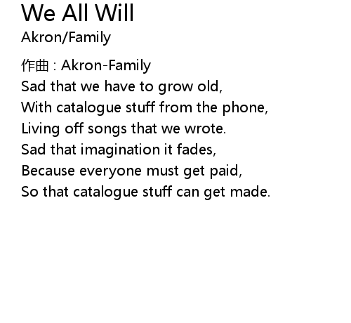 | 歌曲 | We All Will |