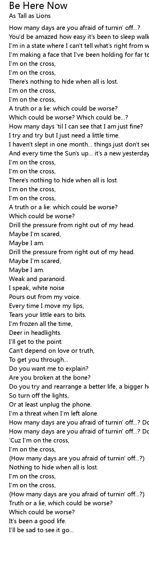 How many days are you afraid of turnin' off...? Do you feel like letting go? |