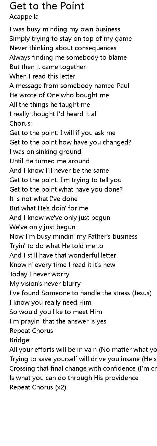 Get to the point: I'm trying to tell you |