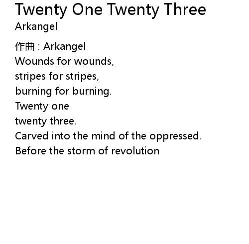 | 歌曲 | Twenty One Twenty Three |