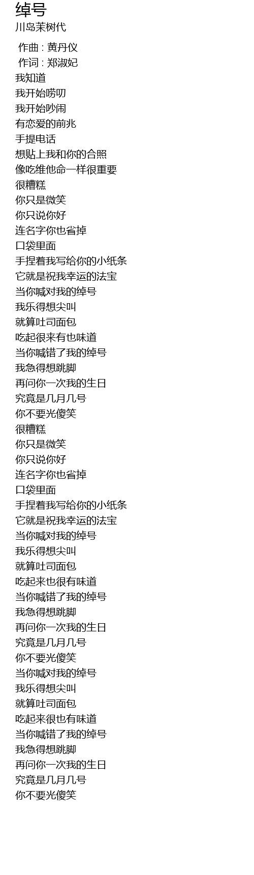 | [02:58.26] | 当你喊对我的绰号 |
