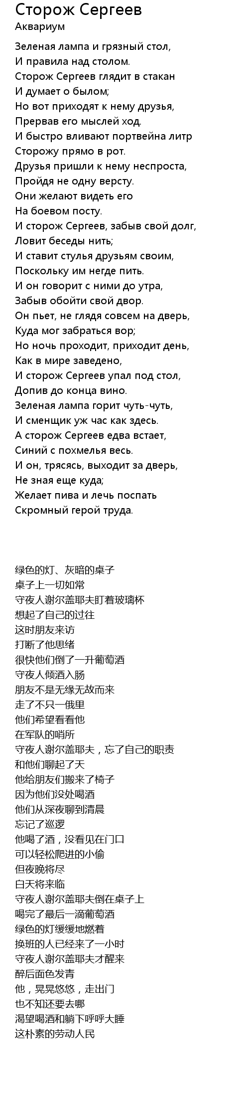 | [00:14.15] | Сторож Сергеев глядит в стакан |