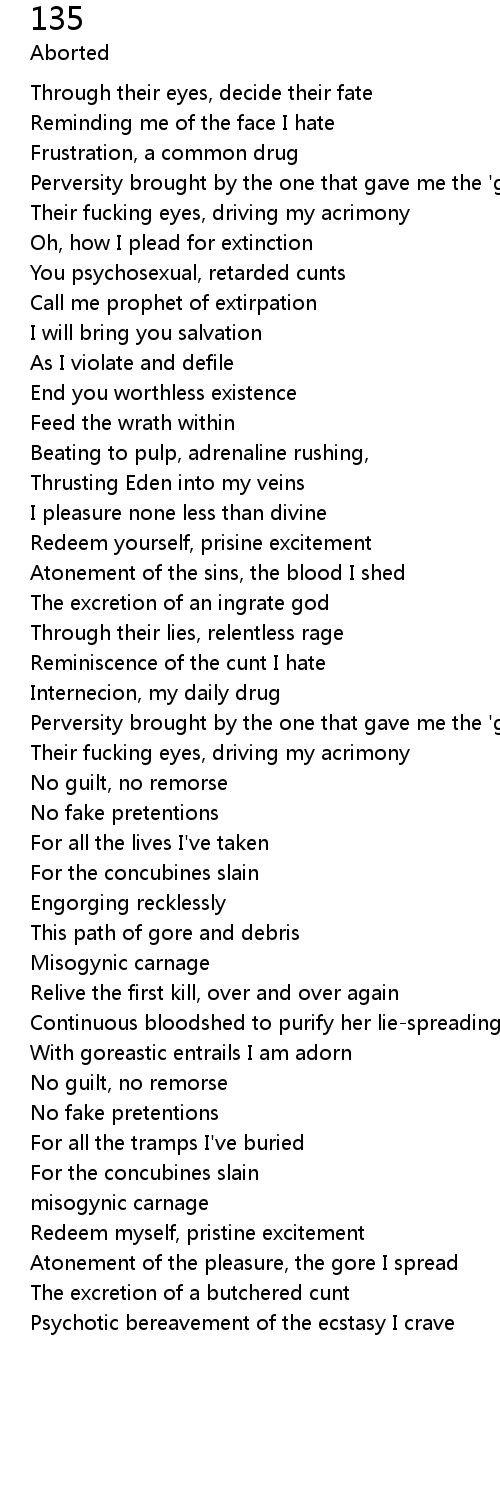 | Continuous bloodshed to purify her lie-spreading throat | |
