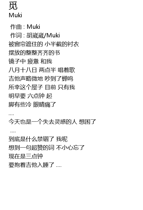 | [02:35.00] | 今天也是一个失去灵感的人 想困了 |