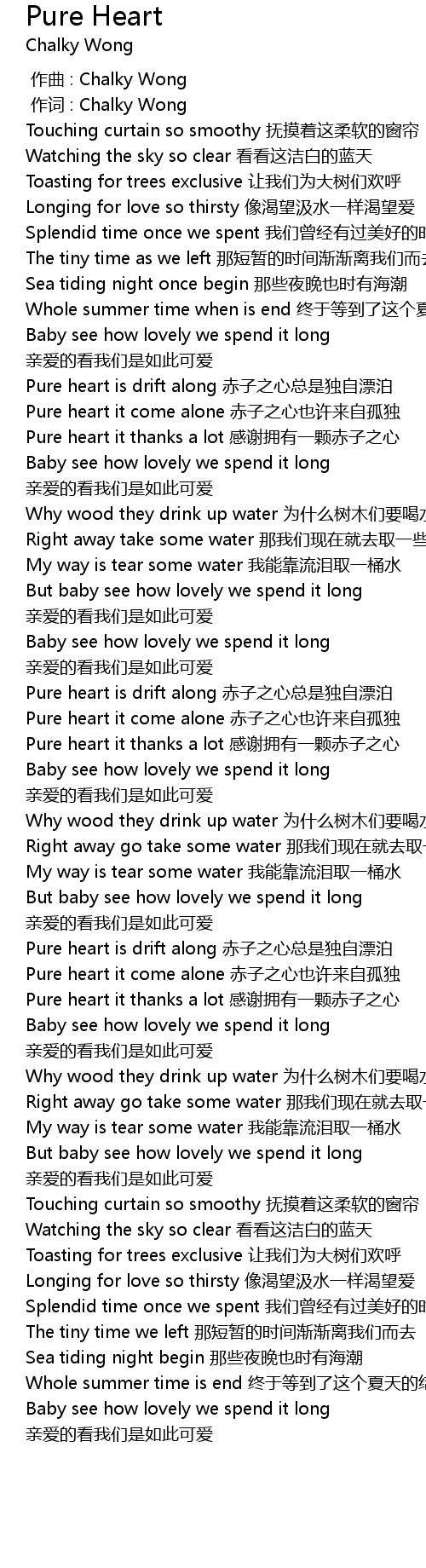 | [00:01.000] | zuò cí : Chalky Wong |