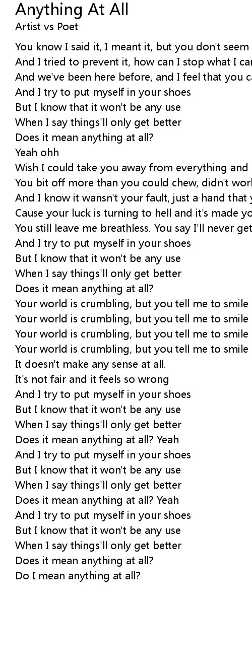 And I know it wansn't your fault, just a hand that you were dealt with |