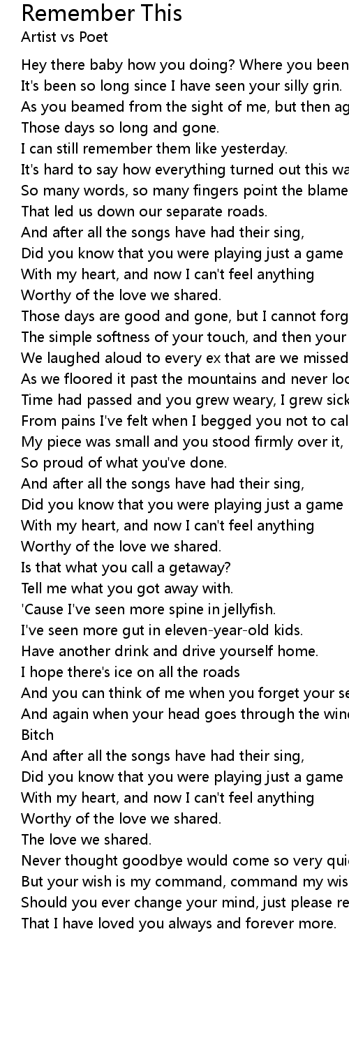 And after all the songs have had their sing, |