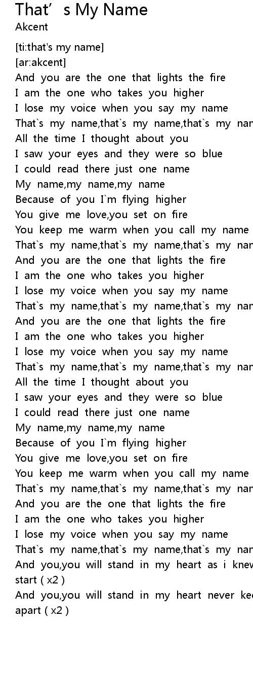 | [00:48.42] | That s my name, that s my name, that s my name |