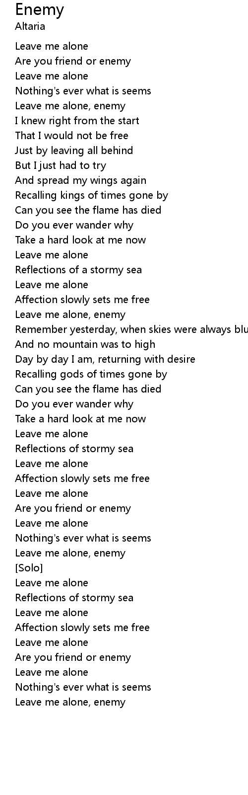 | Leave me alone, enemy |