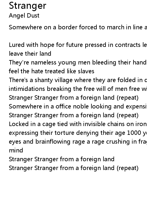 Stranger Stranger from a foreign land (repeat) |