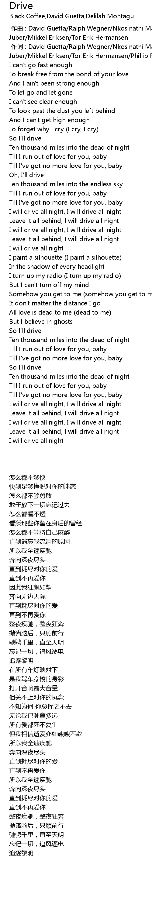 | [00:01.000] | 作词 : David Guetta/Ralph Wegner/Nkosinathi Maphumulo/Ilsey Juber/Mikkel Eriksen/Tor Erik Hermansen/Phillip Fender |