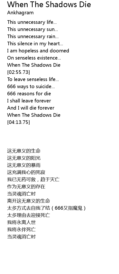 | [03:07.04] | 太多方式去自我了结(666又指魔鬼) |
