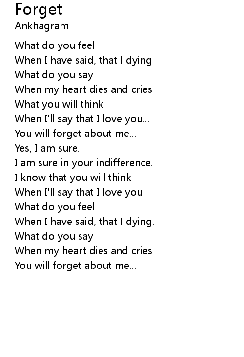 | You will forget about me... | |