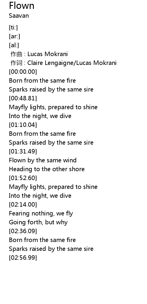 | [01:35.47] | Flown by the same wind |