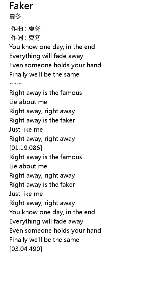 | [02:12.584] | Right away is the faker |