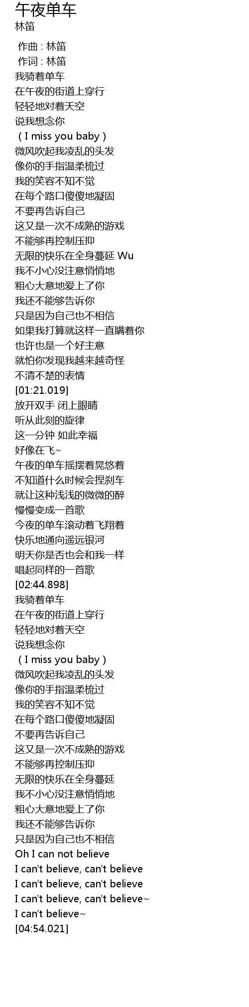 | [02:12.219] | 午夜的单车摇摆着晃悠着 |