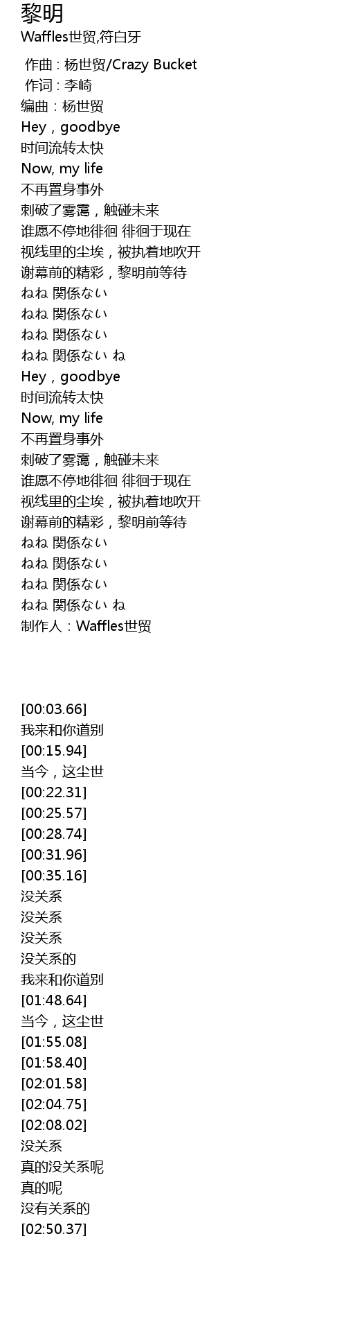 | [02:50.37] | 制作人:Waffles世贸 |