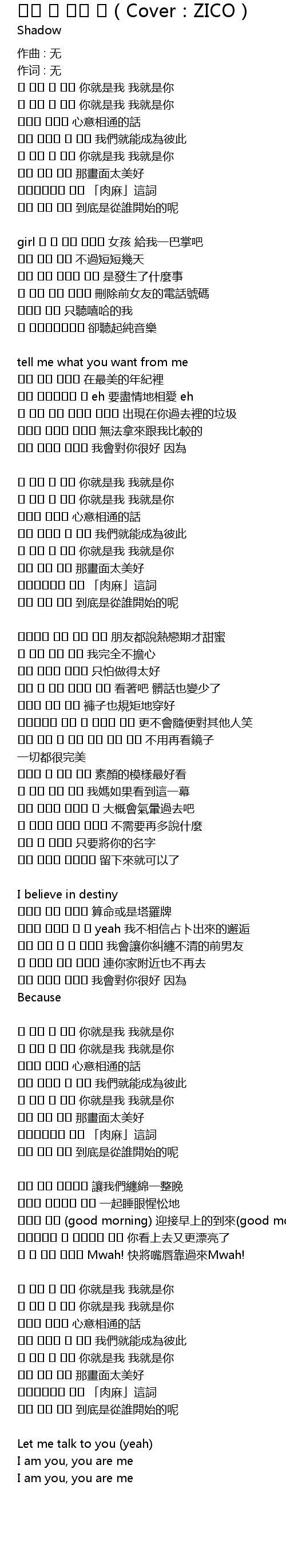 | 歌曲 | 너는 나 나는 너(Cover:ZICO) |