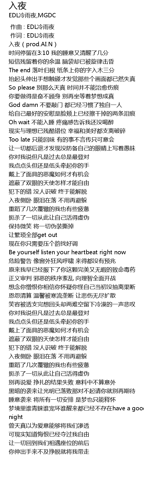 | [00:00.000] | 作词 : EDL冷雨夜 |