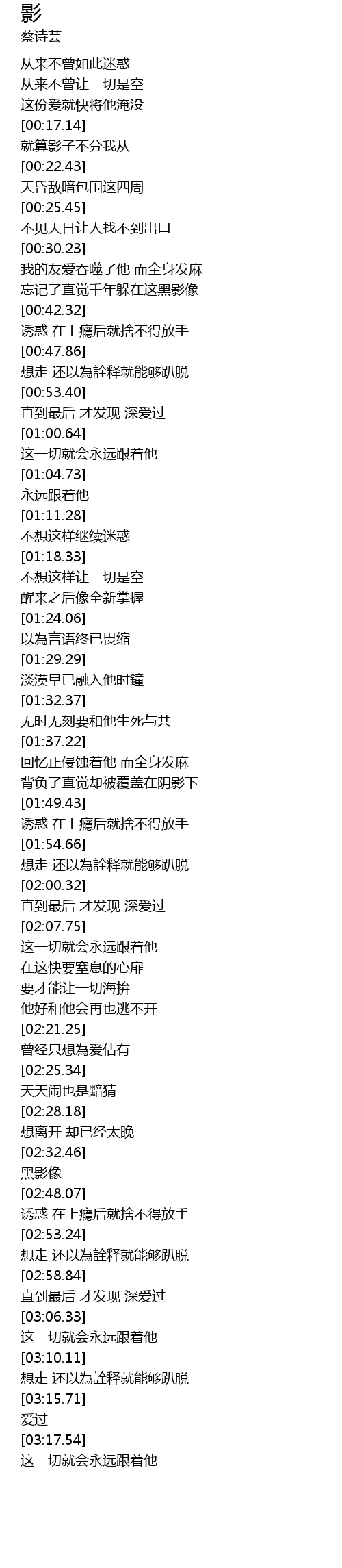 | [00:36.90] | 忘记了直觉千年躲在这黑影像 |