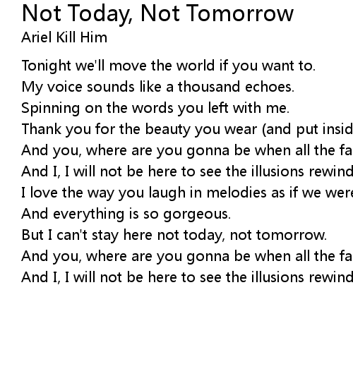 Not Today, Not Tomorrow 歌词