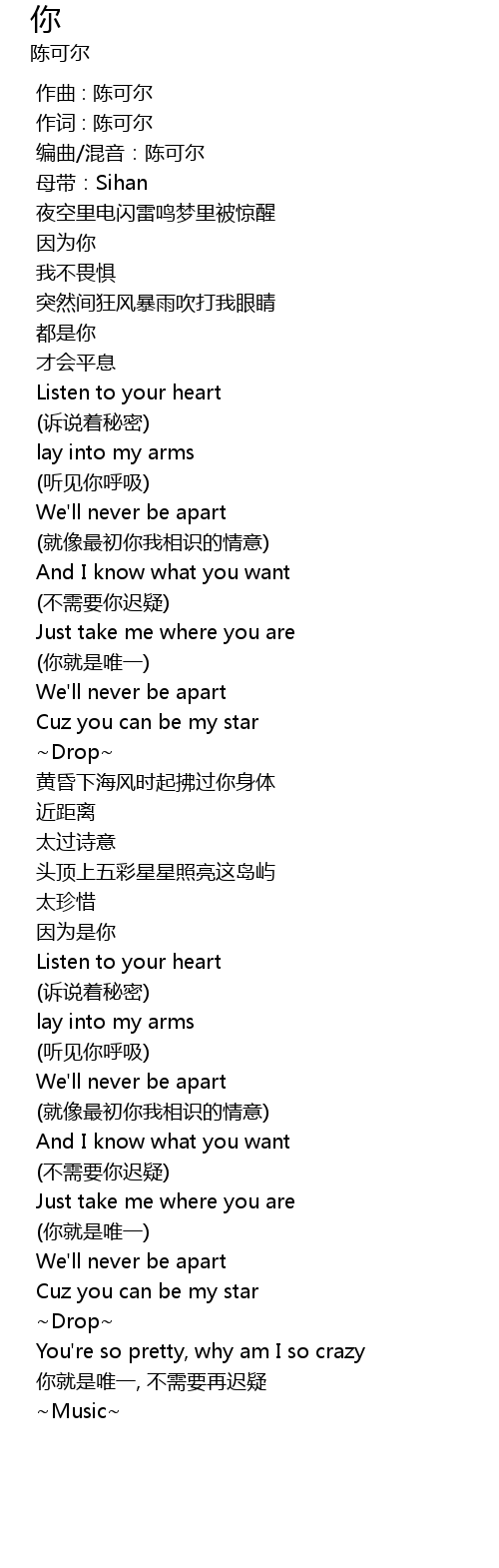 | [00:11.683] | 编曲/混音:陈可尔 |