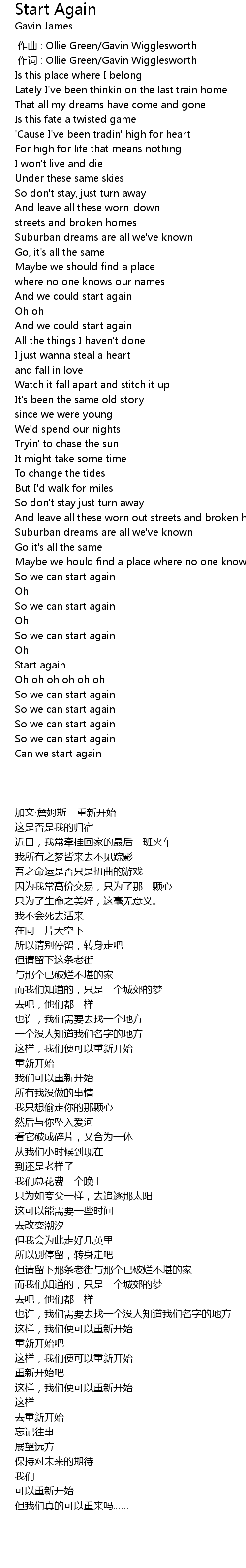 | [00:00.200] | 加文·詹姆斯 - 重新开始 |