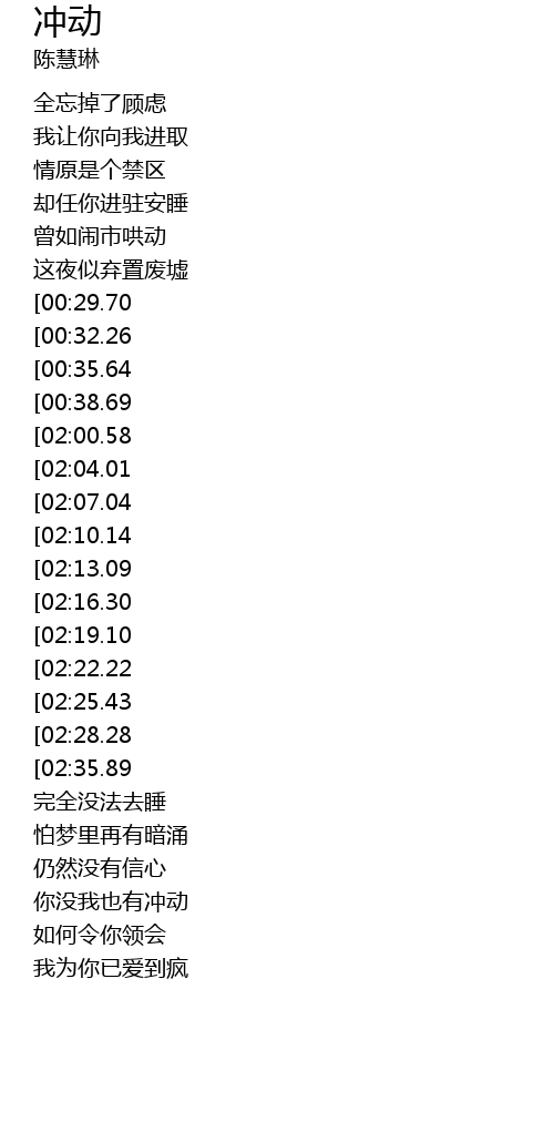 | [01:37.21] | nǐ méi wǒ yě yǒu chōng dòng |