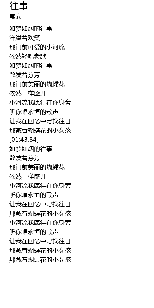 | [00:23.74] | 如梦如烟的往事 |