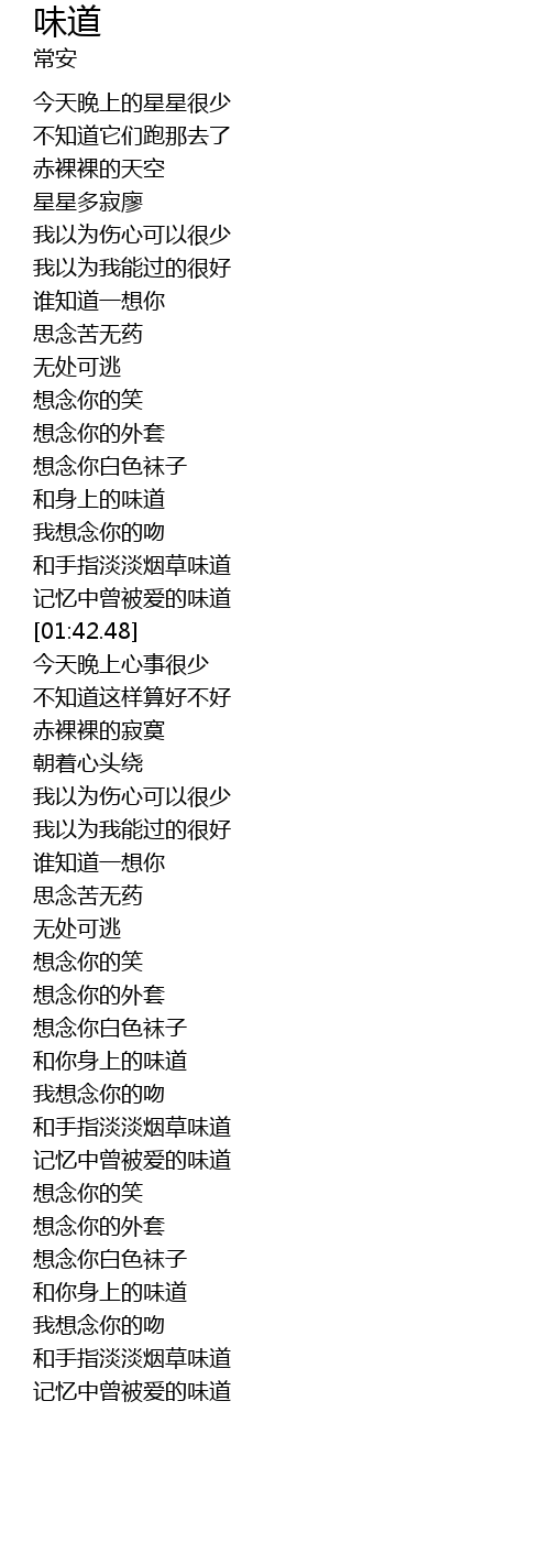 | [01:32.30] | 和手指淡淡烟草味道 |