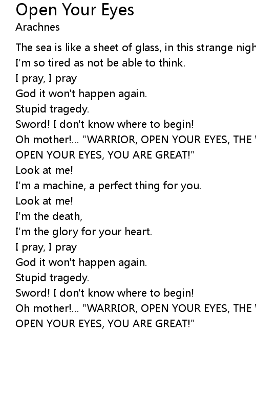 Oh mother!... "WARRIOR, OPEN YOUR EYES, THE WHEATHER LOOKS THREATENING. WARRIOR, OPEN YOUR EYES, YOU ARE GREAT!" |