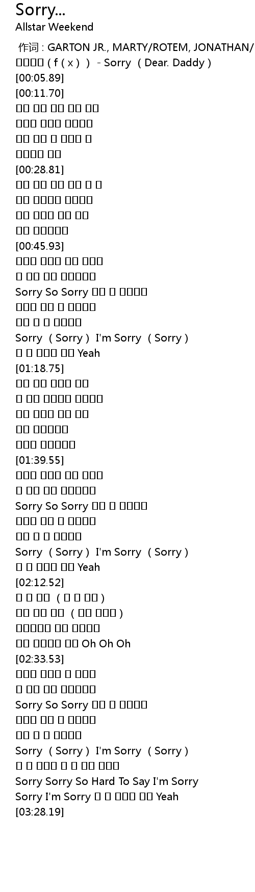 | [00:01.12] | 에프엑스(f(x)) - Sorry (Dear. Daddy) |