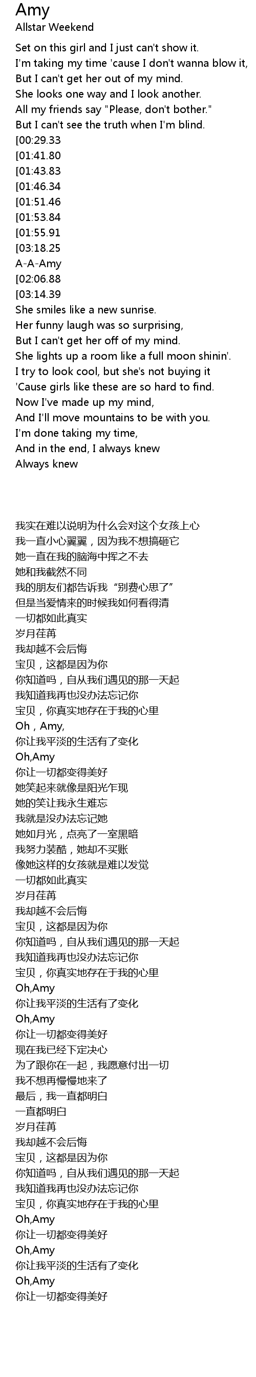 [03:28.14][03:18.25][03:08.81][02:10.35][02:01.13][01:02.53][00:53.02] Oh Amy, A-A-Amy