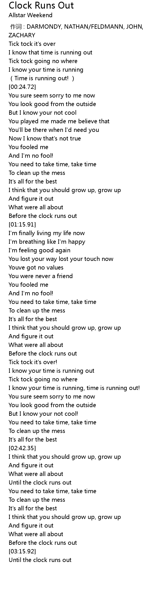 | [02:53.50] | Until the clock runs out |