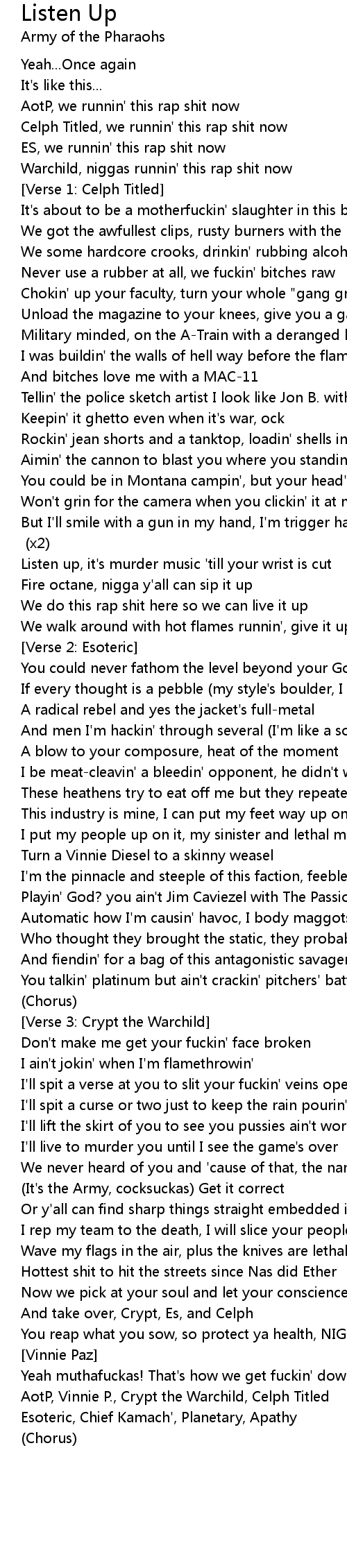 Listen up, it's murder music 'till your wrist is cut |