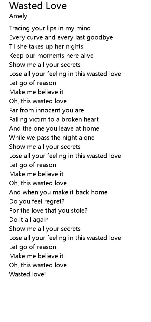 Lose all your feeling in this wasted love |