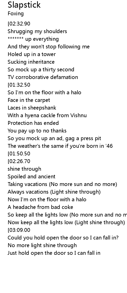 | [03:25.00] | Could you hold open the door so I can fall in? |