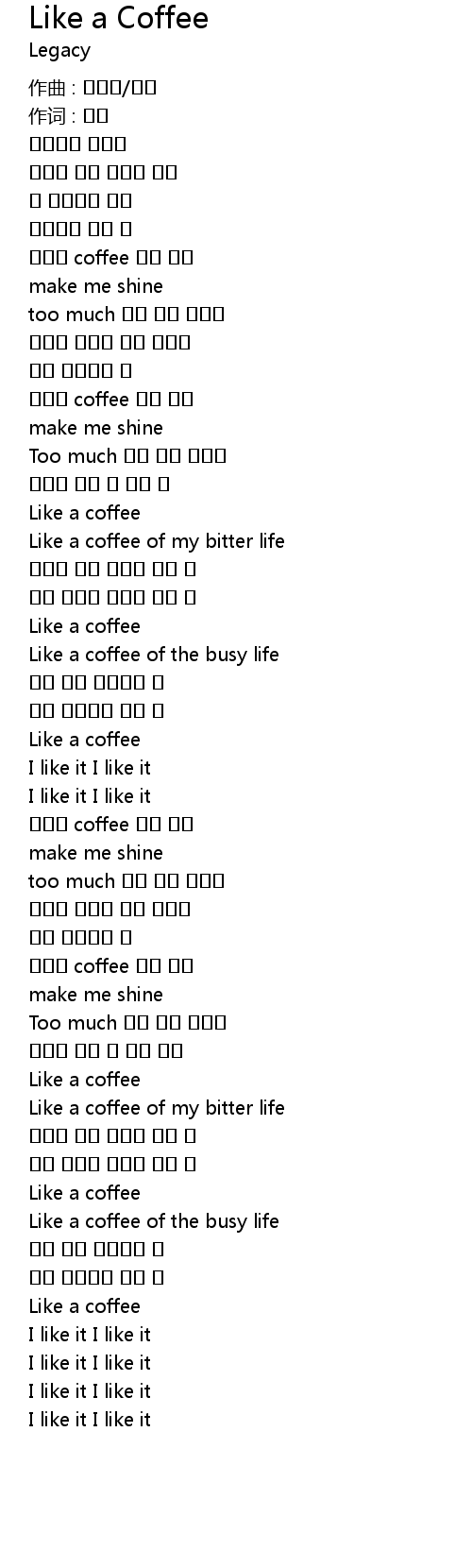 | 歌曲 | Like a Coffee |