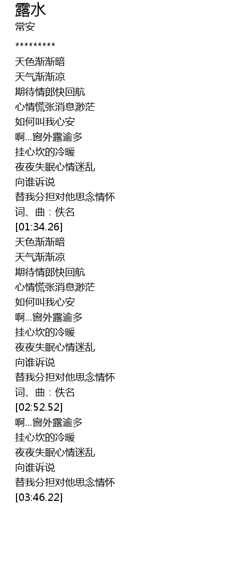 | [03:11.59] | a... chuāng wài lù yú duō |